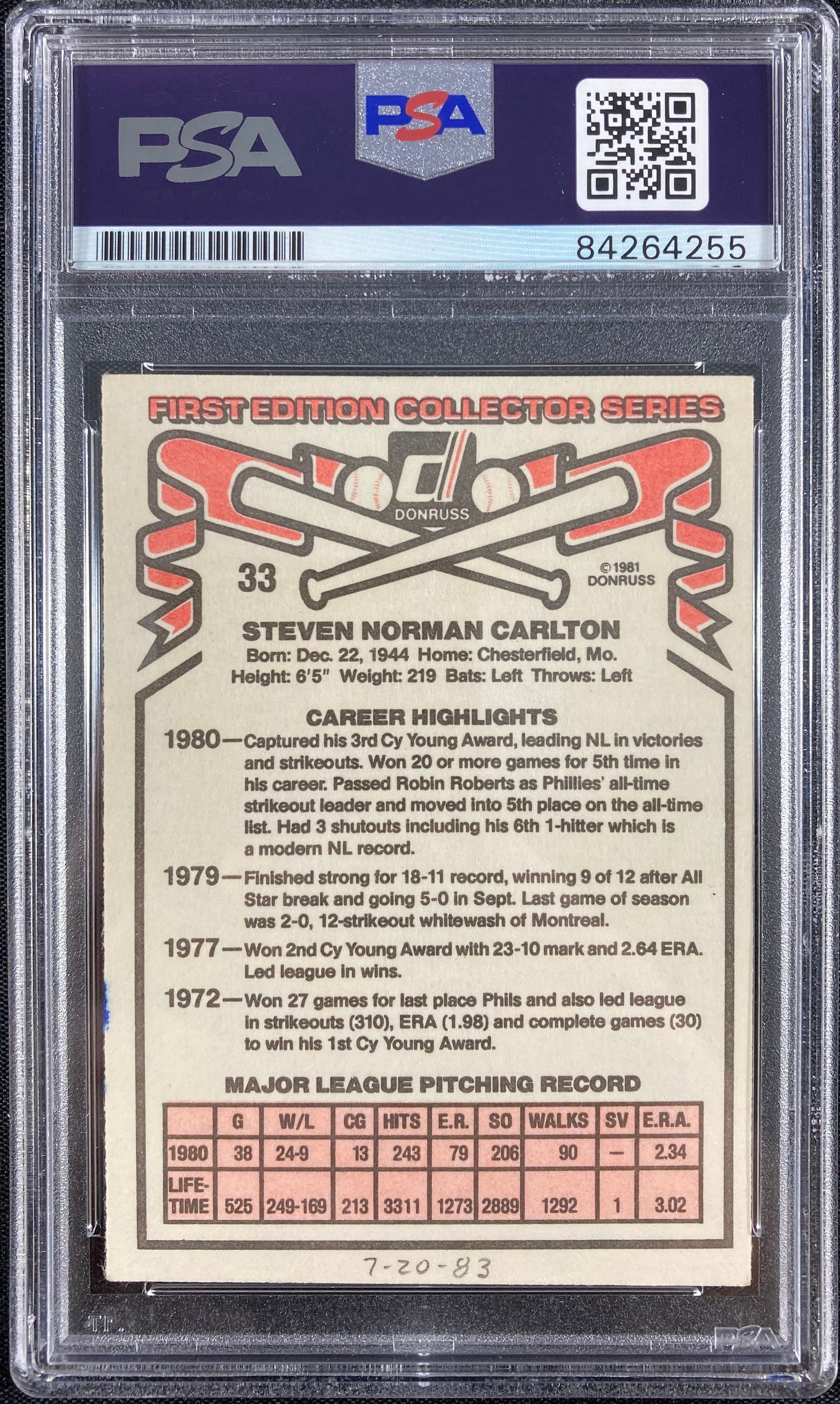 Steve Carlton auto card 1981 Donruss #33 Philadelphia Phillies PSA Encapsulated