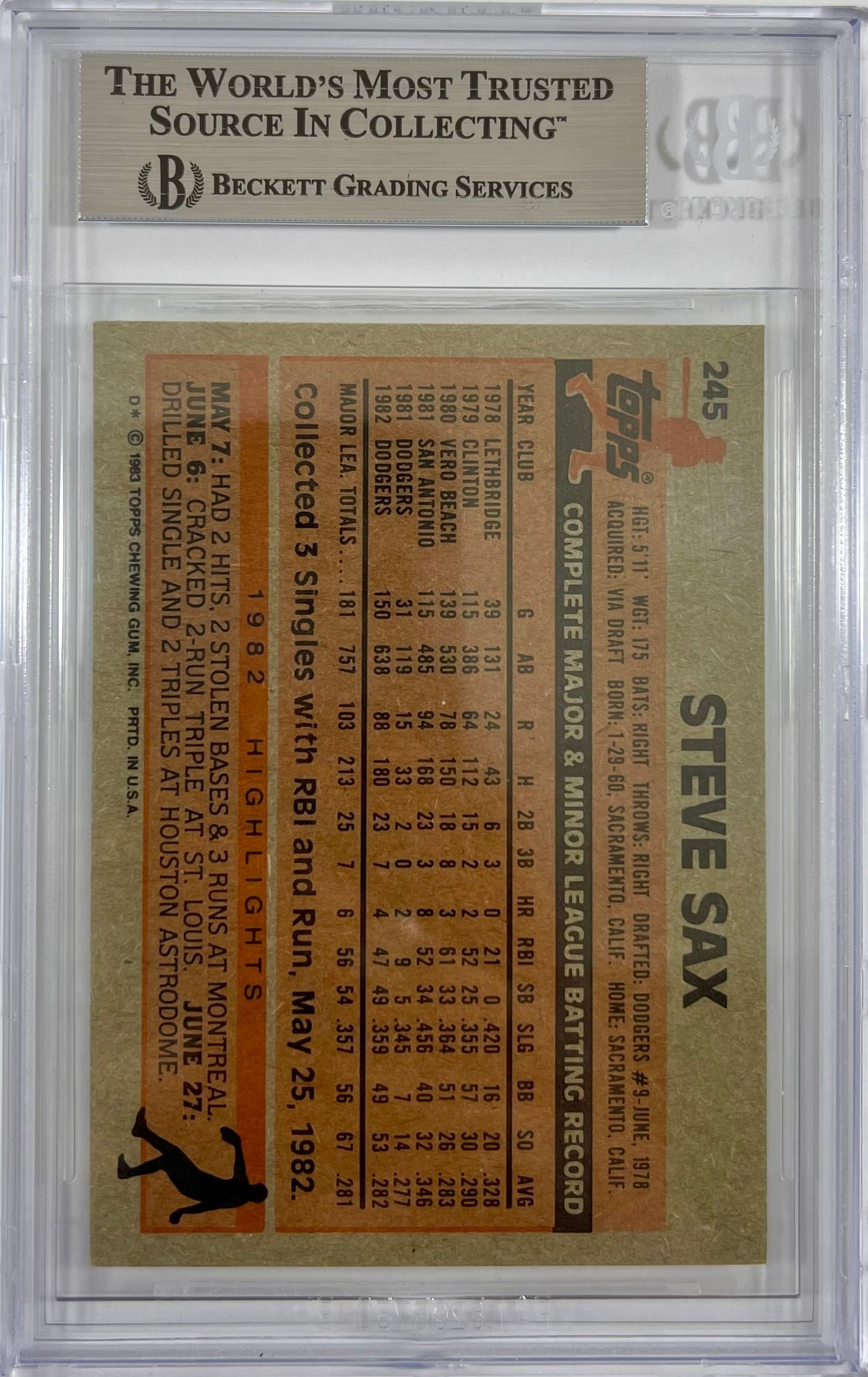 Steve Sax auto inscribed card 1983 Topps #245 MLB New York Yankees BAS Encap