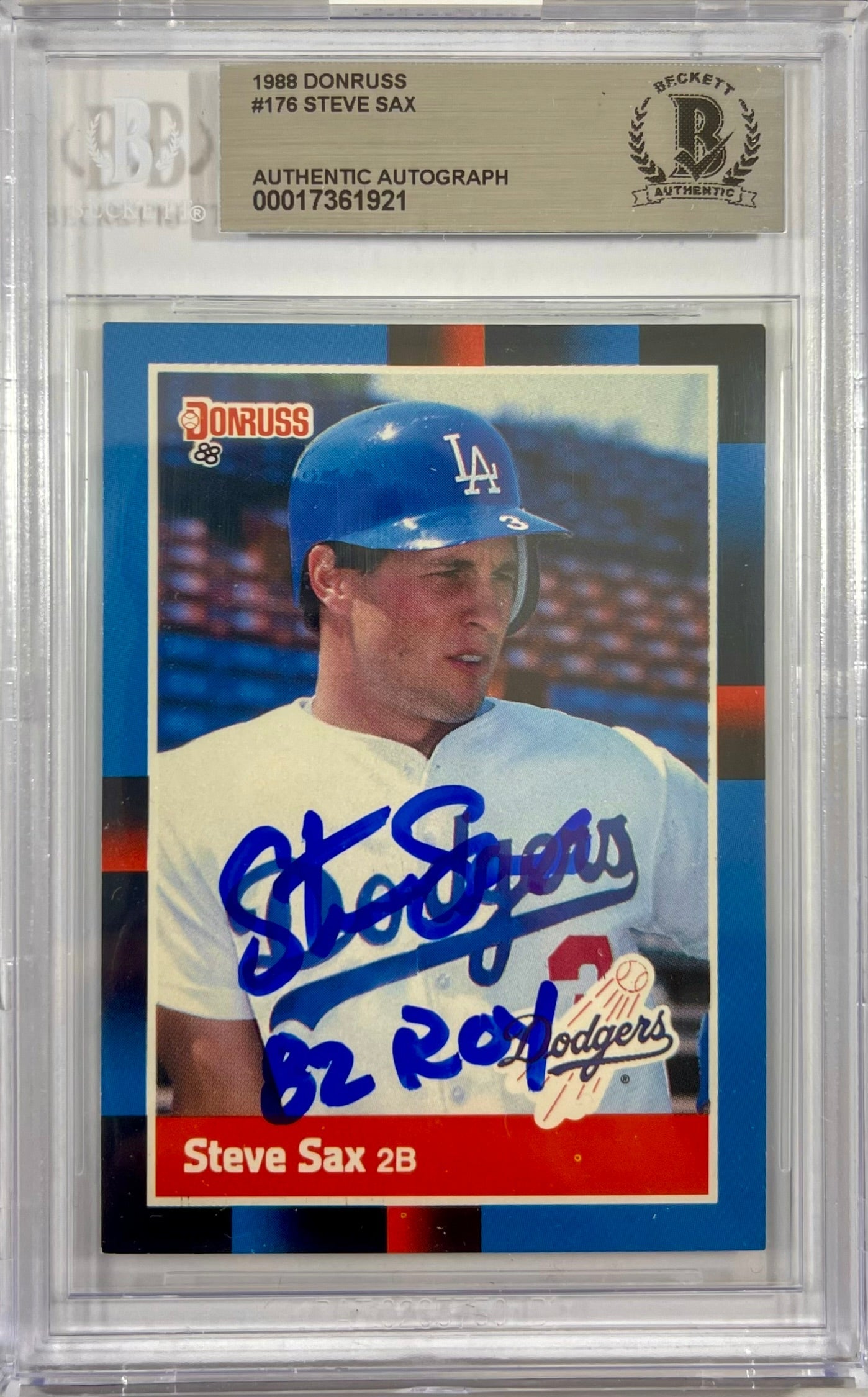 Steve Sax auto inscribed card 1997 Leaf #176 MLB New York Yankees BAS Encap