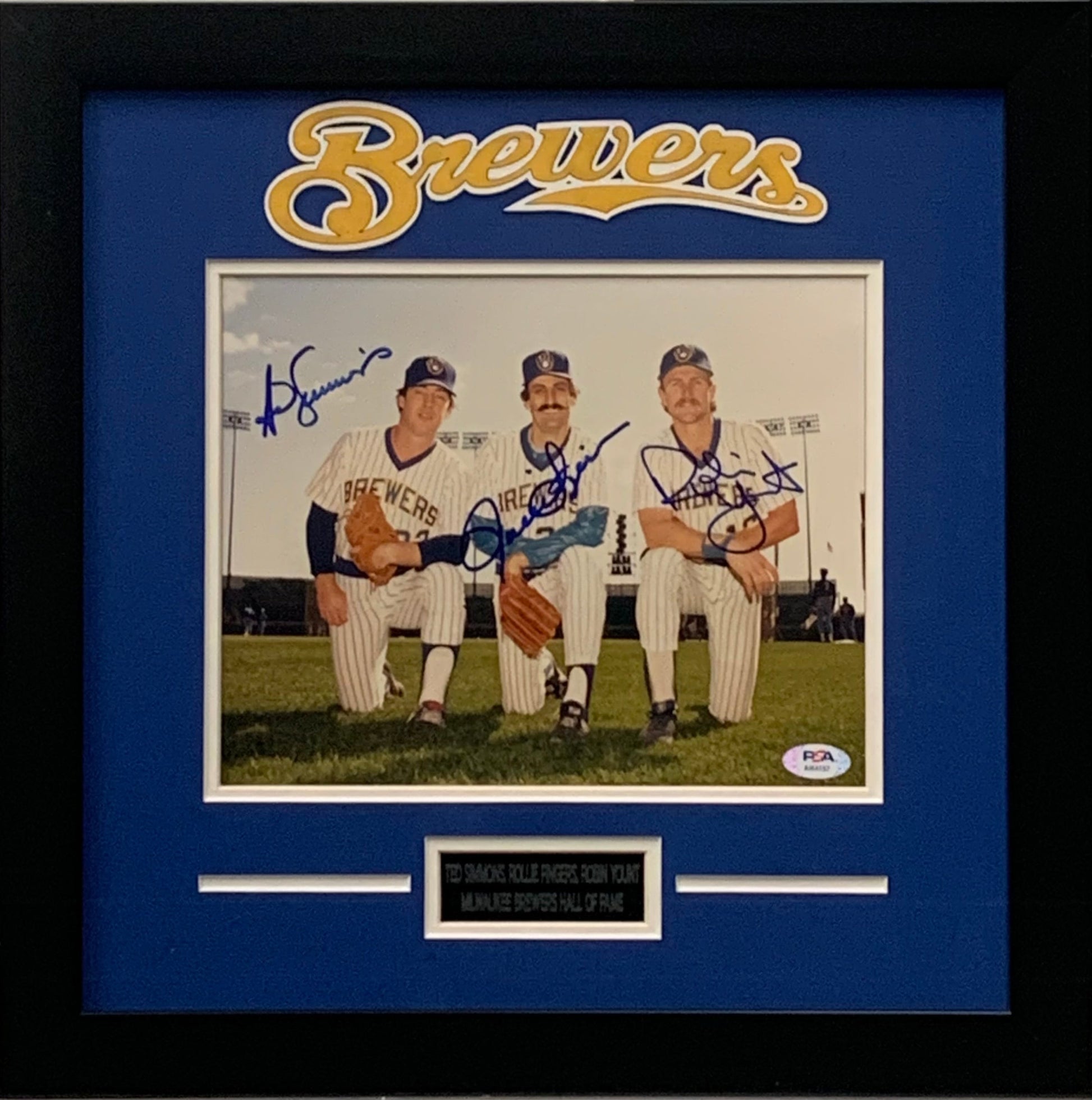 T. Simmons R. Fingers R. Yount autograph framed 8x10 photo Milwaukee Brewers PSA