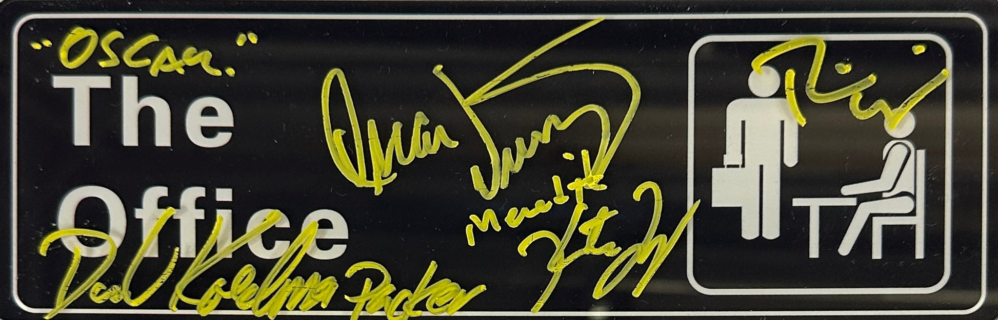The Office cast signed inscribed door sign JSA Dwight Meredith Oscar Packer