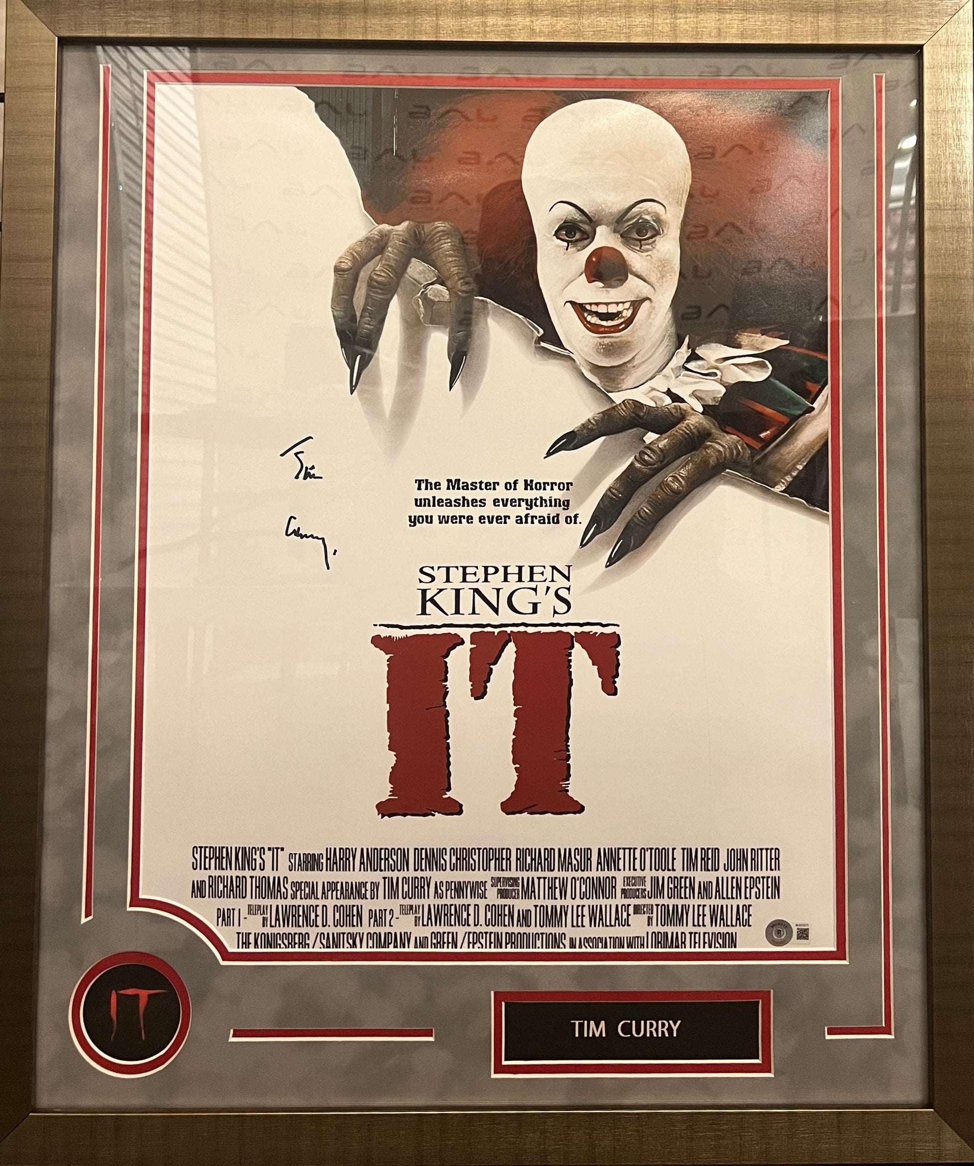 Tim Curry autographed signed 16x20 framed photo IT The Movie BAS Pennywise