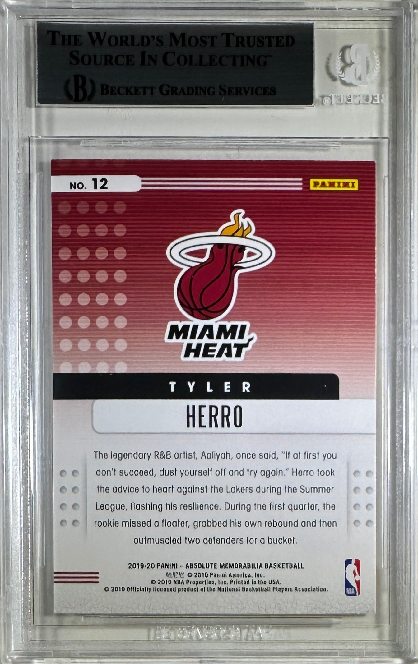 Tyler Herro auto card 2019-20 Panini Absolute RC #12 NBA Miami Heat BAS Encap