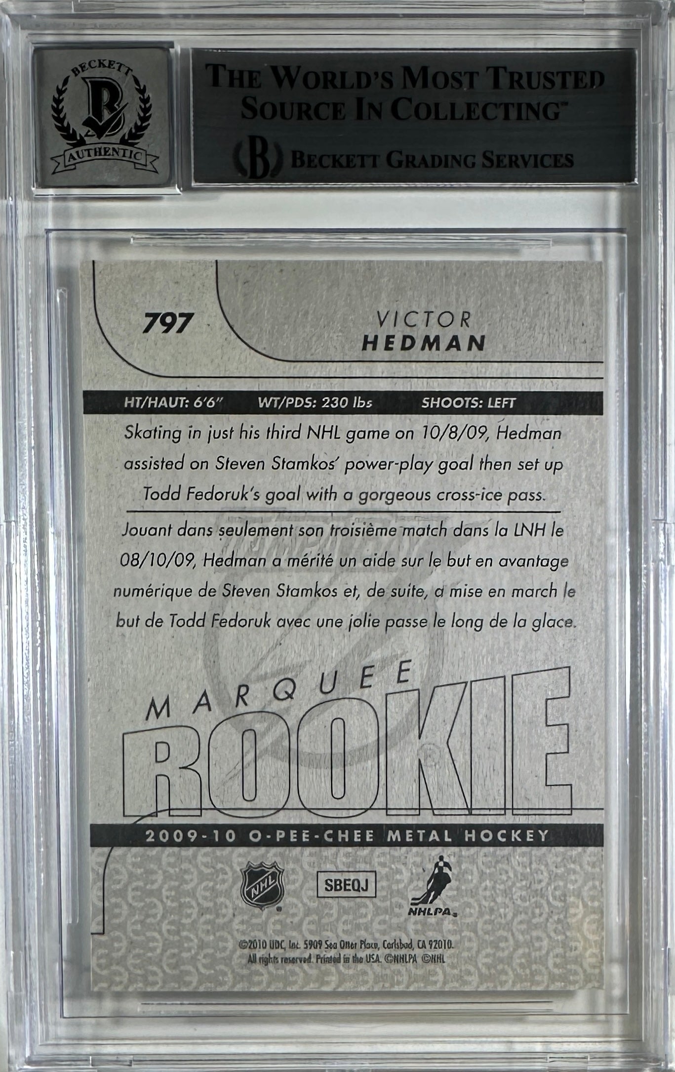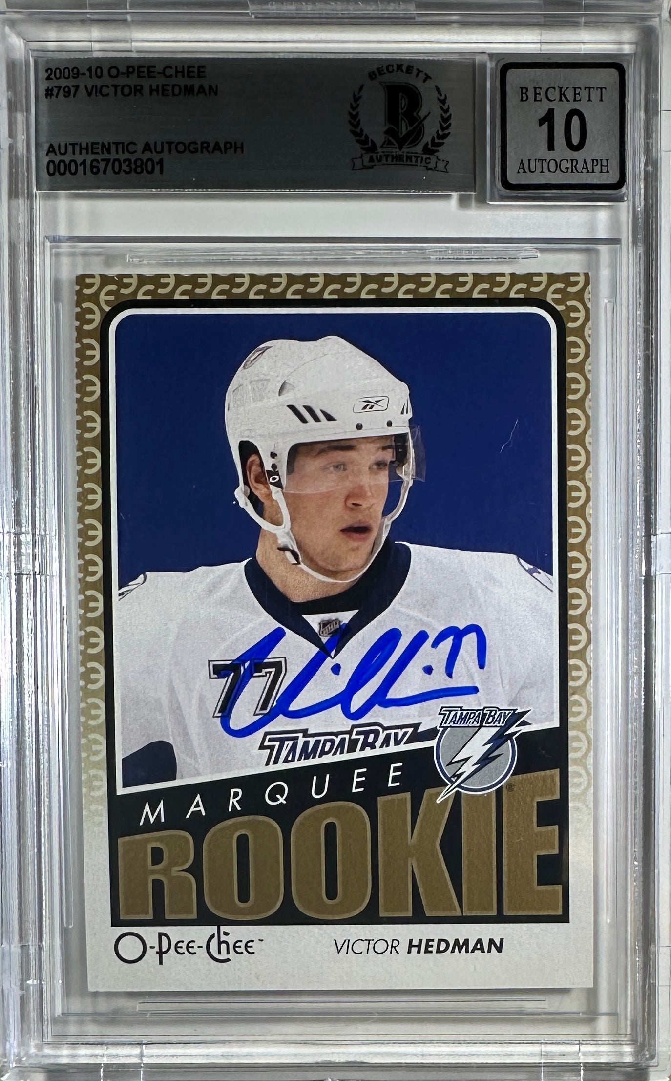 Victor Hedman auto 2010 O-Pee-Chee RC #797 Tampa Bay Lightning BAS Gem Mint 10