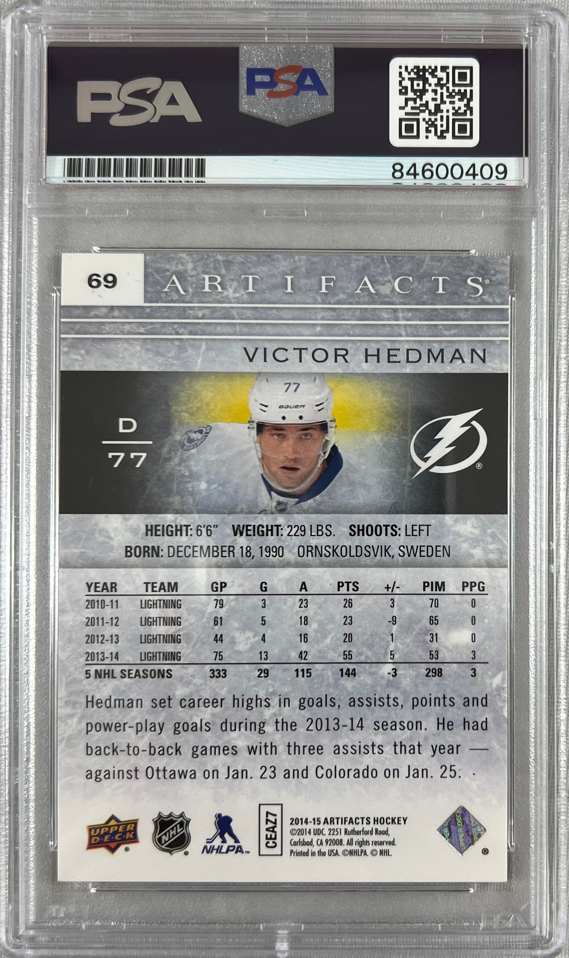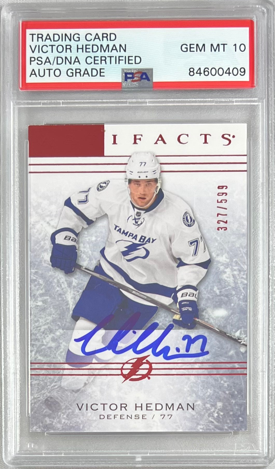 Victor Hedman auto 2014-15 Upper Deck Artifacts card PSA Gem Mint 10 Lightning