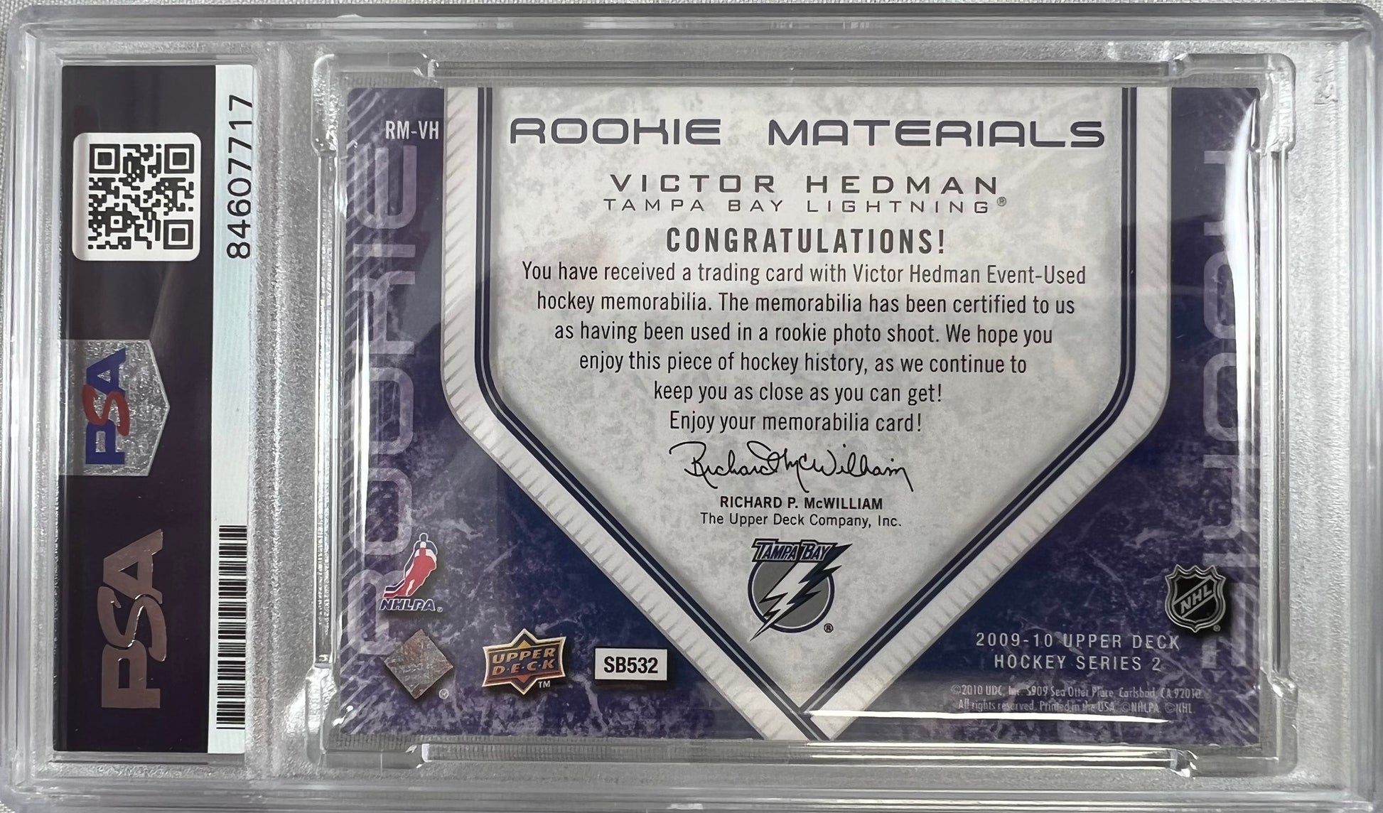Victor Hedman auto RC Upper Deck Rookie Materials #RM-HV Lightning PSA Encap