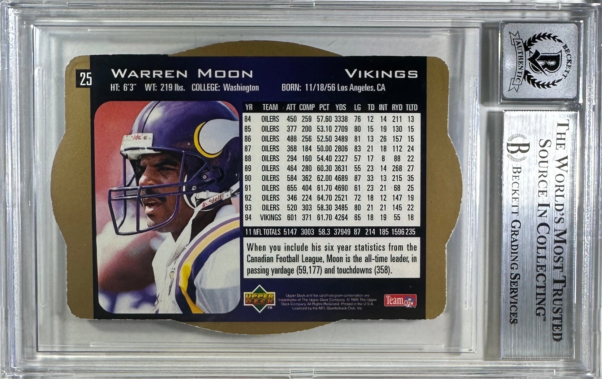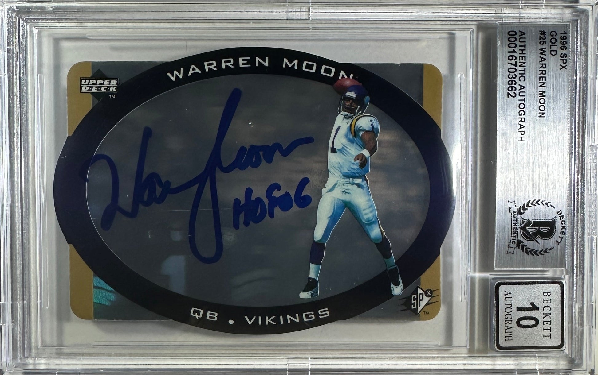 Warren Moon auto insc card 1996 UP SPX #25 NFL Vikings BAS Encap auto 10