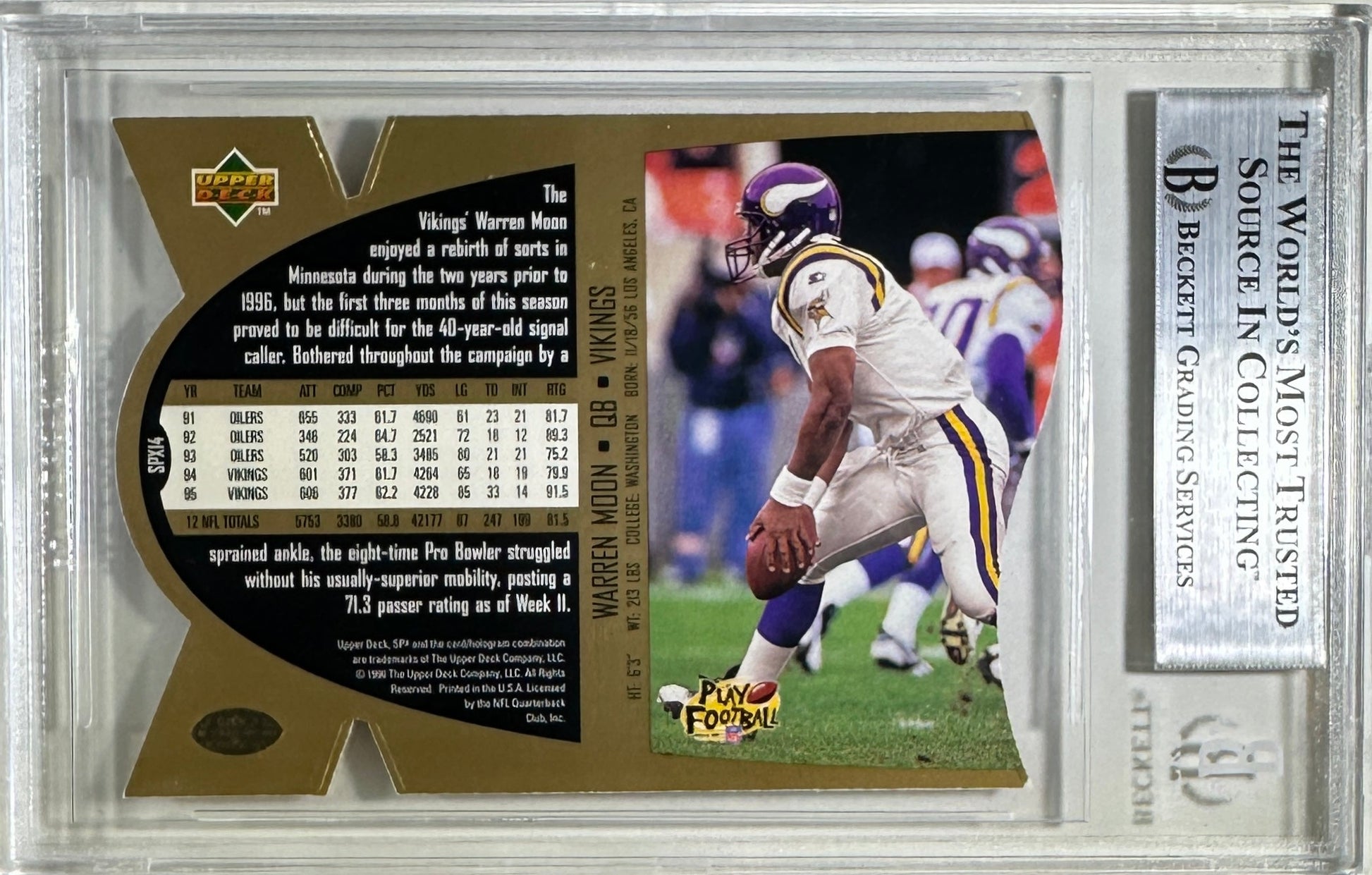 Warren Moon auto inscribed card 1197 UP SPX #14 NFL Minnesota Vikings BAS Encap