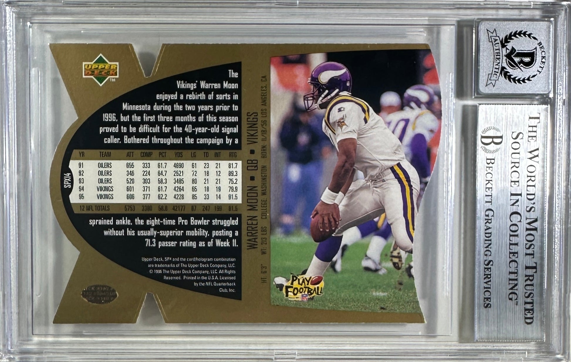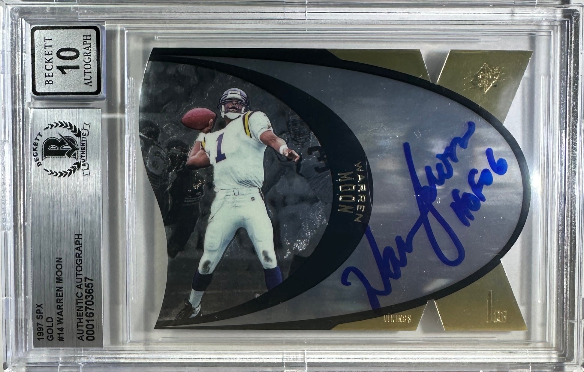 Warren Moon auto inscribed card 1197 UP SPX #14 NFL Vikings BAS Encap auto 10